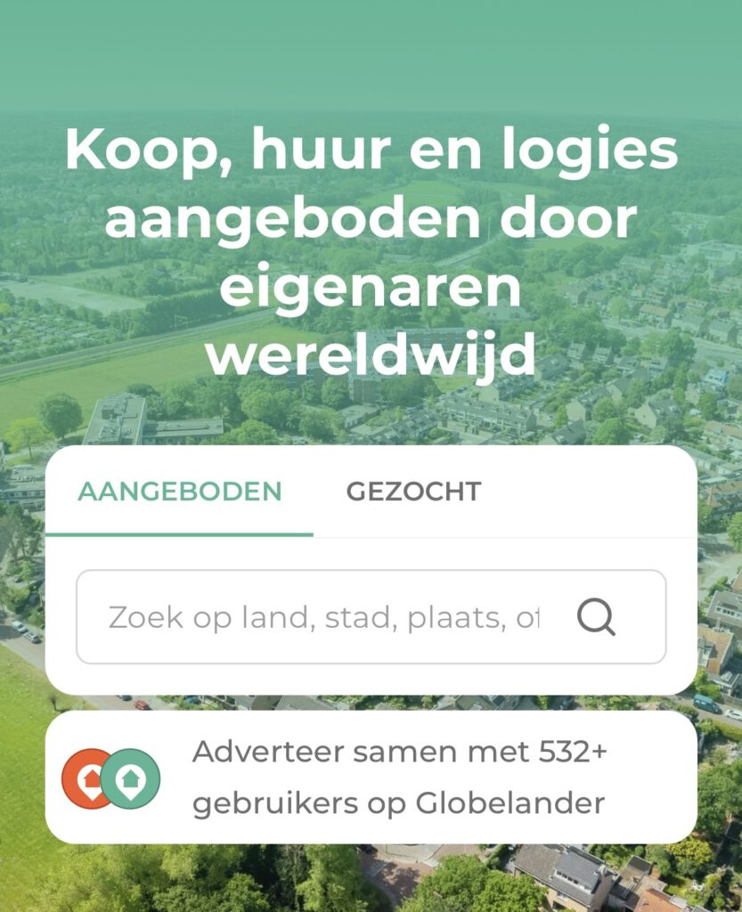 Via Globelander kun je eenvoudig zelf een advertentie plaatsen of reageren op woningen die wereldwijd worden aangeboden.